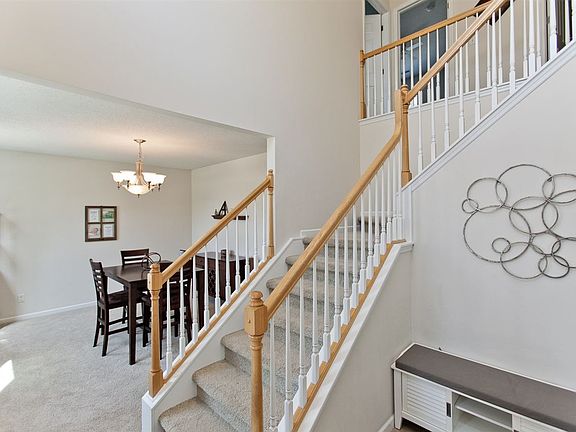 Beautiful, move-in ready home in Stoney Point! You will be welcomed by the tiled, 2 story foyer. Main level den with French double doors & a formal dining room just off the foyer. Open floor plan features an updated kitchen with new quartz countertops, tile backsplash, undermount sink, hardwood floors, stainless steel appliances, maple cabinets, island, breakfast bar, pantry & daily dining area with sliders to the patio. Great room with gas fireplace & white built-ins.