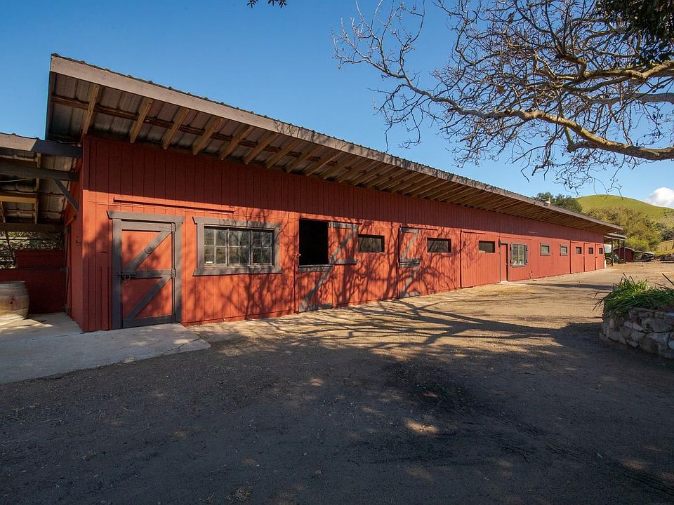 Nestled in the heart of the esteemed Sta Rita Hills AVA, lies an exceptional 30.71-acre estate. This property is a wine and equestrian lovers paradise, with 11.49 acres of meticulously managed pinot noir and chardonnay vines, under the expert management of Kendall Jackson. The vineyard not only produces exquisite grapes, but also provides a source of income for the estate. As a special bonus, the owners receive 5 cases of chardonnay and 5 cases of pinot noir per year of highly rated, estate grown, vineyard designated 3D Wines - with plenty of room to store them in the underground wine cellar. In addition to the flourishing vineyard, this estate boasts a full horse facility, including a 6-stall barn, large riding arena, paddocks, and multiple pastures. Riding enthusiasts will revel in the opportunity to train and ride their horses on site. The picturesque riding trails neighboring the estate are perfect for a morning hack, while the barn offers ample space for storage, with a tack room, wash rack and two cross tie areas for grooming and tacking. The main house of this estate is inspired by the iconic architecture of Greene and Greene. This stunning home boasts impressive attention to detail and superior craftsmanship, with luxurious finishes throughout. The spacious living areas feature soaring ceilings, stunning woodwork, and large windows that frame the incredible views from every room, including a generous light filled art studio, library hall with rolling ladder.