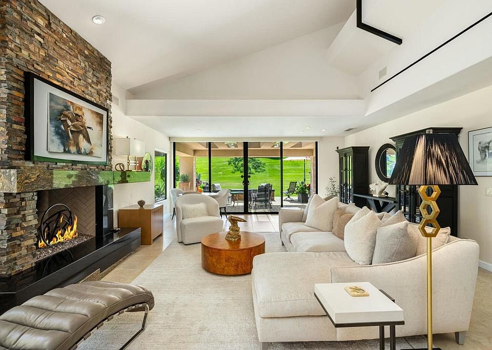 Rare opportunity for a super spacious, FREE-STANDING home (no shared walls) with an EXPANDED FLOOR PLAN in prestigious Ironwood CC! Completely renovated and in immaculate condition, this FURNISHED home is surrounded by private paved patios and beautiful lush greenbelt. Sited on an interior lot on one of the best condo streets in the entire community - a quiet, low-traffic cul-de-sac. Contemporary styling with clean lines, architectural elements, and custom designer touches throughout. Enter through a paved courtyard, custom front door and into a welcoming foyer. The open great room features vaulted ceiling, recessed lighting, electric switch gas fireplace, and lighted soffiting. Gourmet kitchen is laid out for maximum efficiency with slab granite countertops, tiled backsplash, stainless appliances, and bar seating. Beautiful custom cabinetry with convenient pull-out shelving, and very generous storage spaces. All three bedrooms have their own ENSUITE BATHROOMS and are well separated for privacy. Primary bedroom has been expanded and the bath features dual vanities, oversized designer shower, and large walk-in closet. Large family room adjacent to the kitchen provides versatility for use as a home office, TV room, den, game room, or exercise area. Zoned HVAC with one new AC unit. Outdoor patio areas are quiet, tranquil and feature interlocking pavers, built-in radiant ceiling heaters, and custom desert landscaping. Relax under the large retractable awning or stargaze next to the oversized firepit on chilly evenings. Tiled garage is super clean with lots of storage. Ironwood Country Club is a member-owned club (memberships sold separately) with two 18-hole championship courses, state-of-the-art fitness center, tennis, pickleball, gorgeous clubhouse and 5-star dining. Only minutes from world-class shopping, dining, galleries on famed El Paseo, McCallum Theater, and College of the Desert. Golf cart ride away from several golfing venues. And just 25 minutes to Palm Springs Int'l.