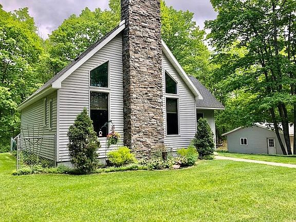 A beautiful home located in a beautiful location situated between Wolverine and Indian River. A parklike setting with plenty of space to enjoy the peacefulness of Northern Michigan. Pride of ownership is recognized throughout this 2 bedroom, 2 bath home (a non-conforming bedroom also located in the lower level). Vaulted ceiling, a grand fireplace, an expansive deck, new roof 2014, extra 2.5 stall frame built garage with insulated workshop plus a garden shed. Perennial gardens throughout the property. A spectacular setting!