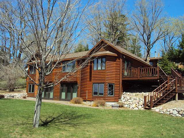 Beautiful level yard down to 405' of sand beach frontage on Lake Tomahawk of the Minocqua Chain, that's what greets you from this lovely log sided stand alone condominium. This lovely property features 5 bedrooms and 2 baths a large deck to grill out and enjoy the sun and fun that this home affords with its large kitchen dining room, sun room and living room featuring a beautiful stone fireplace. You'll love the level frontage down to 2 piers and a boat lift for all your watersport needs. Also included is a large 6 car garage back up the hill for all your storage needs. View this wonderful property today.