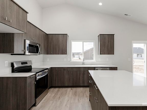 Embrace the comforts of a brand new home in Nampa, Idaho. The Willow 1860's single level space is smartly laid out, boasting two bedrooms situated at the front of the home. To entertain or for personal relaxation, escape into the spacious vaulted great room and dining room that open onto a back patio. The kitchen comes with stainless steel appliances and stylish solid surface countertops, adding both functionality and aesthetics to the kitchen. Natural light cascades through the windows, adding an illuminated touch to the vaulted ceiling. Retreat to the primary suite for restful nights, complete with a roomy en suite bathroom, dual vanities, a stand-up shower, and a walk-in closet. Enjoy the luxury of the great room or warm nights under the stars – this one-of-a-kind home provides space for everyone! Photos are of the actual home!