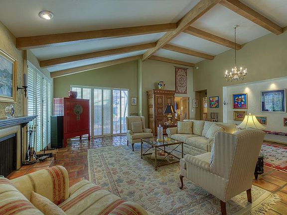 Old world charm meets sophisticated modern finishes. The home is in Casabella, one of the hidden gems of Scottsdale, are rarely available. From the moment you walk through the double mahogany front doors, the great room with refurbished beamed vaulted ceilings creates an eye-catching allure as you start to notice the extensive remodel that has been done A gorgeous fireplace with soapstone mantle is the focal point in the great room. Windows look out to the beautiful landscaping and the restful energy there is the perfect setting for your morning cup of coffee. A well designed kitchen with custom glazed cabinetry and soapstone counters is enhanced by the bamboo flooring. A cozy master bedroom suite, also in bamboo flooring leads into the master bathroom redone in Carrara marble shower andsoapstone countertops, professionally organized duel walk-in closets. Double glass doors lead you into a cozy den, also with vaulted beamed ceilings. There is a built in wet bar, that houses an upscale beverage cooler. The split plan takes you to a gorgeous powder room with custom cabinet vanity. A second guest room done with bamboo flooring has sliding doors to a beautiful atrium. Serving the office/3rd bedroom, are tasteful built-in cabinets, shelving, and more of the fabulous beamed ceilings and bamboo flooring. The hall bath has custom Mexican painted sink and tiles. A private and charming back yard continues the casual yet elegant feel that this property offers. A front courtyard gated in wrought iron has beautiful foliage and a custom awning. There is a side entry 2 car garage with built-in cabinetry. Think Paradise Valley Spanish hacienda on a smaller scale!