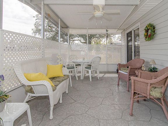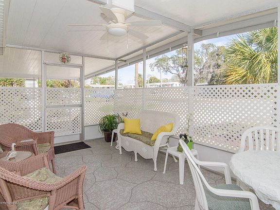 Must See! LIGHT, BRIGHT, IMPECCABLY MAINTAINED, and FULLY FURNISHED 2/2 home in an active 55+ golf community where you OWN YOUR OWN LAND. Home features UPDATED KITCHEN AND BATHS, laminate floors and carpet, CUSTOM DESIGNED CONCRETE DRIVE AND SCREENED PATIO, metal roof over, VINYL SIDING, irrigation system, FENCED YARD, NEW A/C 2010. Community amenities include tennis, heated pool, horseshoes, bocce, community center, pickle ball and more.Major medical services, restaurants, and shopping are just very close by.