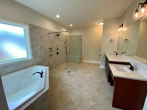 This is a brand new home on a corner lot with a side entry garage! Open floor plan with the master on the main floor. The kitchen has ss appliances, granite, a breakfast bar, island, & walk in pantry. It also overlooks the great room w/ a fireplace. The master is spacious w/ a large walk in closet, & the master bath has a separate tub/ shower & double vanity. Upstairs is a bonus area, 3 bedrooms and 2 baths-1 is en suite. The covered back patio is game day ready w/ a fireplace and tv connection! Lvp or hardwoods in main living areas.