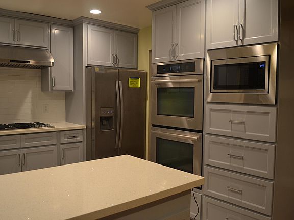 Beautiful large completely remodeled 4 bed/3 bath house located in a quiet neighborhood at end of a cul-de-sac and in a great school district. New kitchen with top of the line Jenn Air double oven, cook-top, dishwasher, side-by-side refrigerator, new cabinets, and quartz counter-tops. Large living room with fireplace and dining room. New flooring throughout, new paint, new window coverings, whole house recessed lighting with dimmers, chandeliers, sconce lights, and new dual-pane windows throughout. Newly installed central air and heat. Large bed and bath downstairs. 2 bedrooms with Jack and Jill bathroom upstairs. Large upstairs master bedroom with walk-in closet. Each bathroom remodeled with designer features, new hardware and vanities, and dual-sink in master. Sliding door opens to well maintained backyard. Attached 2-car garage with opener and additional parking. Owner pays for landscaping. Tenant responsible for all utilities.