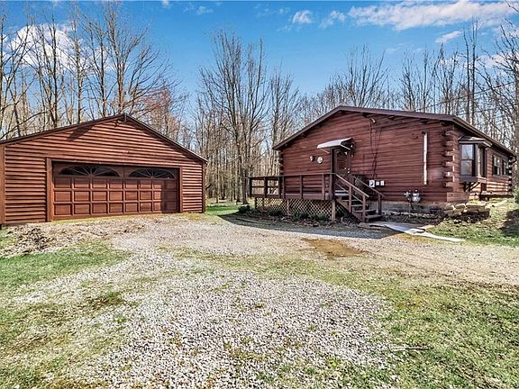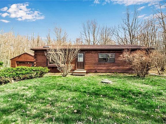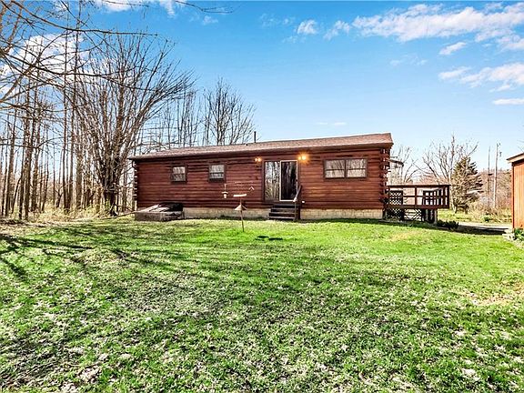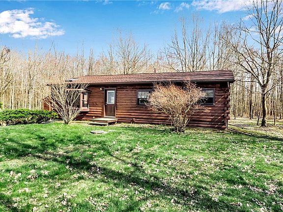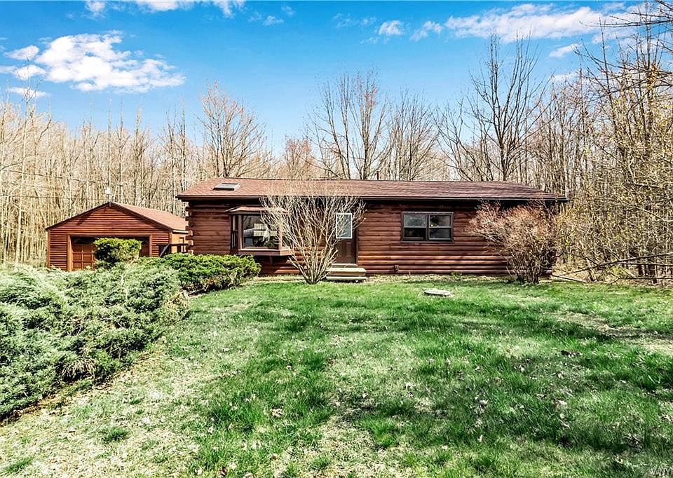 Incredible log home located on a almost an acre with loads of privacy. Beautiful great room with vaulted ceilings & skylight, kitchen overlooks great room, breakfast bar leading to separate dining area with sliders to rear yard. Three good sized bedrooms, ceramic bath, full basement w/walkout. Capital improvements include brand new tear off 30 year arch roof on house and garage, new furnace, new hot water tank, new plumbing, new paint and carpet. STAR savings $474