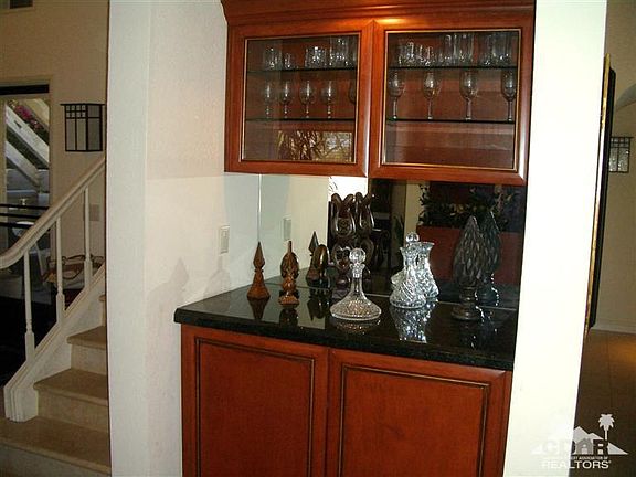Beautiful Sandroc 2 Community, only 20 units located just one half block from famous El Paseo Shops and restaurants. This is the largest plan available, which has been upgraded, including granite counters, French doors, built-ins. New windows, wired for outside speakers, Tommy Bahama Fans, newer appliances, Wine Cooler in Kitchen. Newer A/C system, Jerusalem stone stairway. One bedroom on main floor and one upstairs with lovely balcony. Large fenced rear yard with built-in BBQ, slate and concrete floors. Sattelite Dish. Professionally decorated, Turn-key furnishings are negotiable. This is a prime property and very seldom on the Market.
