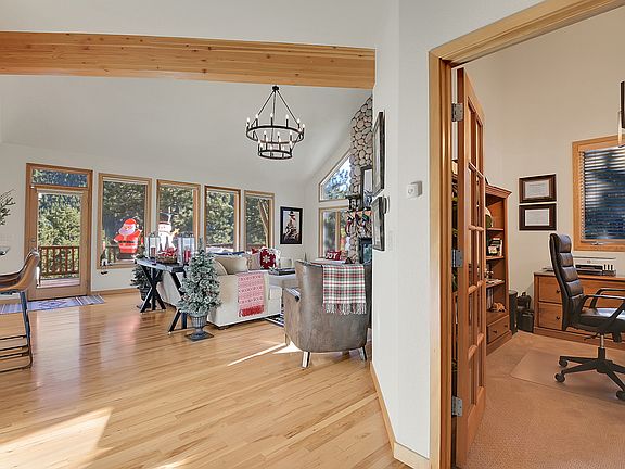 LIVE THE MOUNTAIN LIFESTYLE! Welcome to this quintessential Colorado home in Evergreen, offering an exceptional living experience on 2.45 acres of serene, natural beauty. Nestled in the heart of the Colorado foothills, this home features four spacious bedrooms, two dedicated offices, and three cozy gas fireplaces, making it an ideal retreat for those who seek both comfort and style in an unparalleled setting. As you step outside, the private back deck offers sweeping views of the Arapahoe National Forest, providing the perfect backdrop for relaxation and outdoor entertaining. Imagine spending evenings here, unwinding in the hot tub while taking in the breathtaking mountain vistas. The heart of the home is the gourmet kitchen, a chef's dream outfitted with luxury appliances. The open layout seamlessly connects the kitchen to the stunning living room, where dramatic cathedral windows flood the space with natural light. The grand river rock gas fireplace serves as a focal point in the living room, creating a warm and inviting atmosphere. Upstairs, the master retreat is a private sanctuary. Featuring a romantic gas fireplace and a private balcony with sweeping views, this space offers ultimate relaxation and privacy. The attached five-piece master bath is nothing short of luxurious, complete with a jetted tub, dual sinks, and elegant finishes. Each of the upper-level bedrooms boasts vaulted ceilings, allowing for a spacious feel and an abundance of natural light, ensuring these rooms are both beautiful and functional. Additionally, the home offers a main-level office and a lower-level office, perfect for remote work or creative projects. Convenience is key with a three-car attached garage, and the home also includes a new washer and dryer for your convenience. This home is a rare find, offering everything you need for an idyllic Colorado lifestyle just minutes to picturesque downtown Evergreen and Evergreen Lake. Please note: All-wheel drive or 4x4 vehicles are recommended for access. No smoking or cats are allowed, but one dog may be considered.