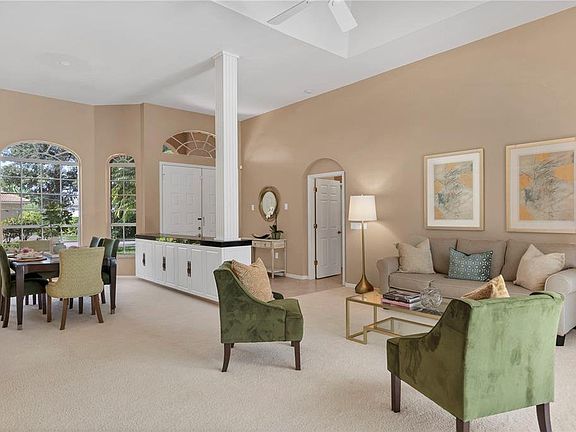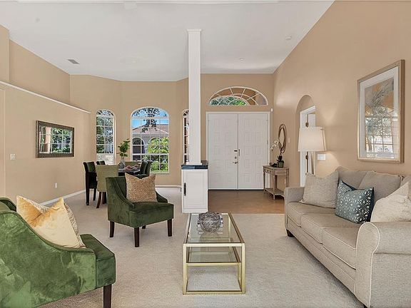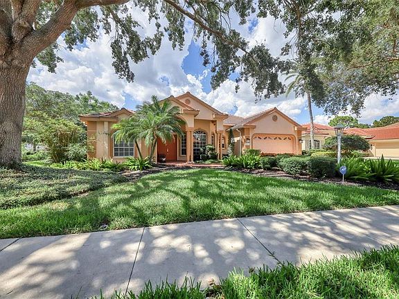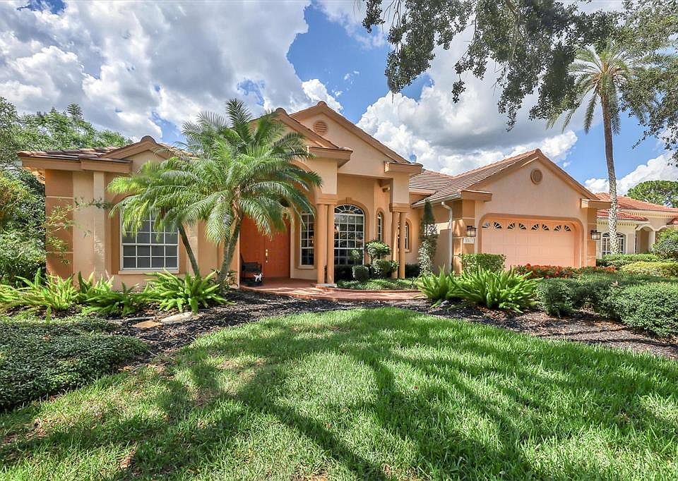 NEW LOOK! NEW PRICE! for this wonderfully maintained one owner home with impeccable finishes throughout. Customized Todd Johnson "Stratford" floor plan with an amazing unique serene setting surrounded by mature landscaping, colorful trees, and a meandering waterway can be viewed from the home office or the large lanai area. The Eaton Neighborhood of the University Park Country Club offers its residents a tranquil environment. This home has a newer ROOF installed in 2016 and several upgrades throughout speaking to the meticulous care taken by these owners. You'll arrive to a pavered driveway, two car garage, and a pavered winding walkway leading to a double doored entrance. Living Room & Dining Room replete with customized island with cabinetry, pristine carpeting, and sliders to a wonderful pleasing outdoor view. French doors separate the formal from the casual - Sunny morning dining area, kitchen and family room - the entire area has 20" tile on the diagonal, kitchen breakfast bar, electric cooktop, Corian counters, pantry and white cabinetry. The family or gathering room has an electric fireplace (that is plumbed for natural gas) and sliders leading to the lanai with the heated pool and spa. Off of the gathering area are two carpeted bedrooms with a shared bath between. Toward the back of the residence is the fully customized home office complete with contemporary white built ins and a desk area, Bamboo flooring, and a lovely window seat perfect for relaxing, reading or just looking out to the waterway. Also, a full bath is accessible to the office or the often-sought-after pool bath. The Primary Suite is carpeted and spacious with four separate closets (2 larger and 2 small), the remodeled bath boasts a soaking tub, separate shower and vanity with separate sinks. Lounging by the sparkling heated pool will be a sun worshipers dream or taking a reprieve in the spa will help restore your enthusiasm for the good life. As a resident of University Park Country Club, you can enjoy an abundance of social activities including 27 holes of championship golf, tennis on the Har-Tru courts, an afternoon of croquet, a workout in the fitness center or the anticipation of the planned pickle ball courts (soon to come). There is a newly refurbished dining facility and the ever-popular outdoor Park Grill. University Park Country Club is close to the UTC Mall, many fine dining restaurants, shopping galore, Sarasota/Bradenton Airport, Ringling Museum and Downtown Sarasota, and of course our world-famous beaches! This is Truly a Lovely Home!