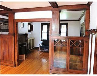 This two-story Arts & Crafts house features old-world charm with gorgeous unpainted woodwork, a spacious kitchen (dishwasher, gas stove, refrigerator, pantry) with breakfast room addition (sliding glass door to rear deck), 3 bedrooms, 1 full bath (additional bath in basement), refinished hard wood floors, living room fireplace with wood stove insert, hot water heating, 1 car detached garage with automatic door opener, thermopane windows, huge front porch and a lovely level rear yard with shed/playhouse. Brick and Shingle exterior, Asphalt roof.