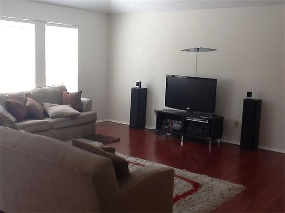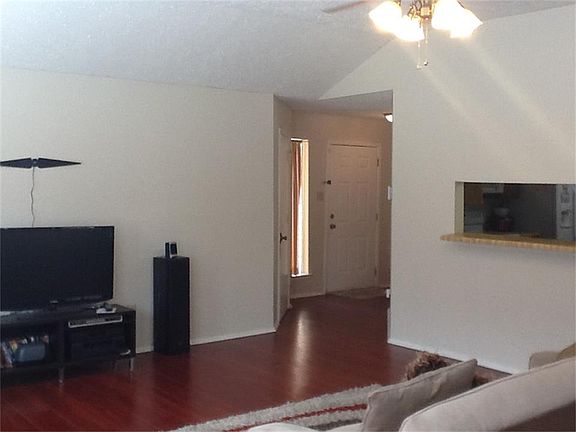 Great home in nice developed neighborhood. Large living room with high ceiling, ceiling fan and wood laminate floors. Breakfast room is open to living room and kitchen. Kitchen has open pass thru window to living area with lots of cabinet and counter space. Home has security system, updated roof and new outside air unit. Large back yard with wood fence.