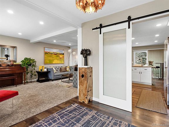 This charming four bedroom, three bathroom home is a true Arvada gem! Located at the top of a cul-de-sac with access to walking trails, a quick ride to Lake Arbor, pool, parks and paths. The location is fabulous and offers pretty great views. The main level hosts a large living and dining area, a well-appointed eat-in kitchen, with granite countertops, stainless appliances and plenty of cabinets overlooking the beautiful living room. The upper level offers a large sunlit primary suite with a three quarter ensuite bath. Two additional large upstairs bedrooms have incredible views and share an updated full bath. The lower living space offers a spacious family room with high ceilings and a charming gas fireplace. Enjoy the fourth bedroom, currently used as an office, that faces west and has great light, with a powder bath nearby. Easy access to a very large well landscaped backyard is perfect for Colorado’s lifestyle; enjoy a warm cup of coffee in the morning and great glass of wine in the evening with the concrete stamped patio. This is a lifestyle dream. Last, but not least, the basement is spacious and well configured. It can be used for an office, additional living space, a play area, or anything else you can think of, and is steps away from the 2 car garage. Olde Town Arvada is just down the way for dining and entertainment. This home is located in the heart of Arvada with quick access to Highway 36, Wadsworth Boulevard, and I-70 making it the perfect location to commute to downtown or take a weekend drive in the mountains.