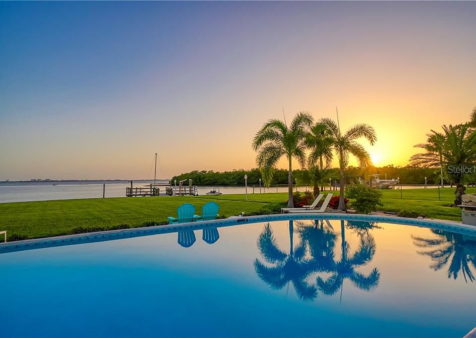 Stunning bay views can be yours from this elegant Whitfield Estates home with a stylish mid century modern vibe. 156 feet of waterfront with a deep water dock and over an acre of property make this a terrific opportunity to create the family compound of your dreams. The home features large, open spaces an updated kitchen, and bedrooms with ensuite baths ideal for multi generational living; offering space and privacy for everyone. The large open pool deck is perfect for lounging, entertaining and watching the dolphins swim by. Whitfield Estates was established in the 1920's and is a lovely neighborhood with a variety of architectural styles. Tree lined streets and sidewalks make this neighborhood perfect for dog walking and meeting neighbors. Nearby is the Ringling Museum of Art, New College, the University of South Florida, the Ringling College of Art and Design, the Asolo Theater and Sarasota Bradenton International Airport. Downtown Sarasota is only 6 miles away and the beach of Lido Key and popular St Armand's Circle is only 8 miles away.