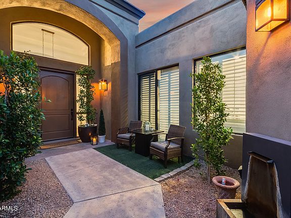 This stunning luxury home located in the highly desired community of Gainey Ranch offers the ultimate in style, comfort, and convenience. The home features a beautiful fireplace that serves as the focal point of the open-concept living area. The floor-to-ceiling glass back door provides an inviting transition between indoor & outdoor living spaces. The kitchen is equipped with plenty of prep and storage space, making cooking a breeze. The private bar area and wine coridors is perfect for entertaining. The spacious master suite includes a spa-like bathroom complete with a soaking tub and walk-in shower. The tranquil backyard is an oasis of calm, where you can enjoy quiet evenings by the fountain or spend time with friends and family. Conveniently located close to Scottsdales most sought