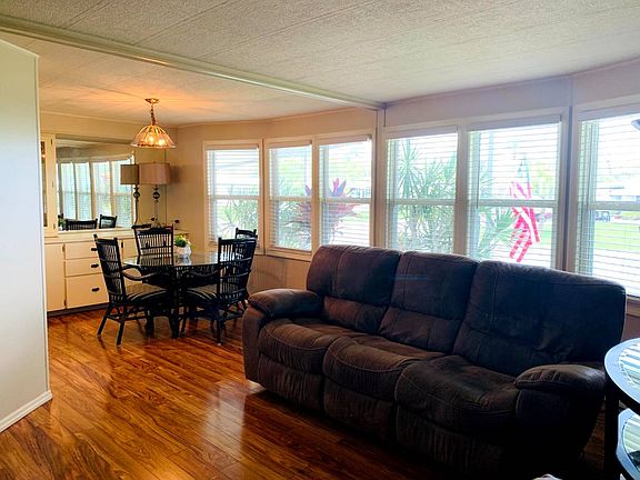 Come take a tour of this spacious Florida home! This home is extra large inside and out. Located on a large lot with a lake view. The is a covered patio in the back of the home for grilling or enjoying all of Florida's wildlife. There is a long and widened driveway so plenty of room for your vehicles and golf cart. The elongated attached shed houses newer extra load capacity washer and dryer with plenty of outlets for a craftsman shop. Enjoy the Florida weather on your screened lanai just off the driveway. Inside you will enjoy a spacious formal dining room off of the round kitchen with plenty of counter space and pantries. Off the kitchen is a built-in hutch and second dining area. Into the living room, you can relax and enjoy the manicured floors and fresh neutral colors of paint while watching your big screen TV and comfy furniture. When you are ready to call it a night, retire to your giant master suite with a King size sleep number bed. Wash your cares away in your huge walk-in shower equipped with a rainfall shower head. This home comes with many extras, such as a second climate-controlled side lanai. It also features new insulated windows and a beautiful front door. This home is turnkey including a large generator so you will never be without power in case of storms and power outages. This gem will not last long. Named Best Retirement Community six years in a row by the Herald-Tribune of Bradenton, Colony Cove 55+ retirement mobile home community has a wealth of amenities designed to keep up with your active lifestyle. Located in beautiful Ellenton, FL, just inside the Sarasota/Bradenton metro area, the Colony Cove community features beautiful banquet rooms, nice billiard facilities, a private boat dock, and five spacious clubhouses. Great fishing opportunities, huge game rooms and well-stocked libraries are also great diversions. Take a dip in one of our five heated swimming pools, or challenge your friends and neighbors to a friendly match on either the shuffleboard or tennis courts. Colony Cove also offers you on-site management, laundry facilities, a woodworking shop, two fitness centers, and a dog park to make your active lifestyle more enjoyable. With local area dining options just minutes away and a wealth of nearby shopping opportunities such as The Ellenton Outlet Mall, you belong at Colony Cove. Come by today and let us help you become a member of this tranquil community. Lot rent $1061.39 per month. All listing information is deemed reliable but not guaranteed and should be independently verified through personal inspection by appropriate professionals. Integrity Mobile Home Sales cannot guarantee or warrant the accuracy of this information, measurements, or condition of any property. Measurements are approximate. Lot rent is subject to change.