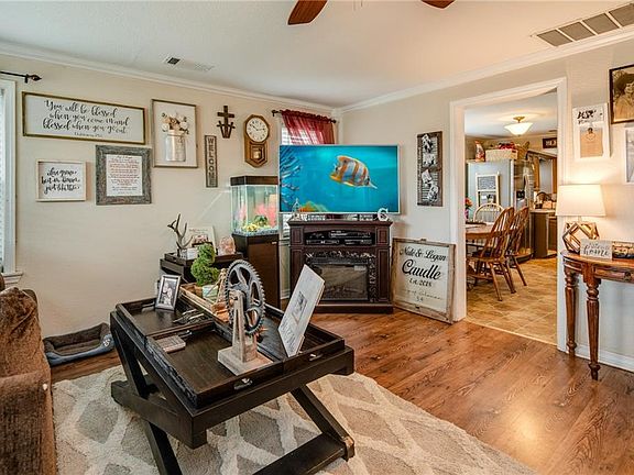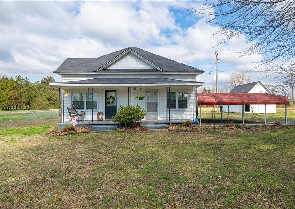 Adorable Farm House with 5 acres, shop and a pond!! Gorgeous level 5 acres, great location on a paved road. Cute and quaint farm home with wood floors, crown molding, gas range, stainless appliances and built in microwave vent hood. White vinyl windows, and central heat and air. Enjoy sitting on the covered front porch or cooking out in the fenced in back yard. Wood frame 20x28 detached shop/storage building. Lots of room for tools or wood working.