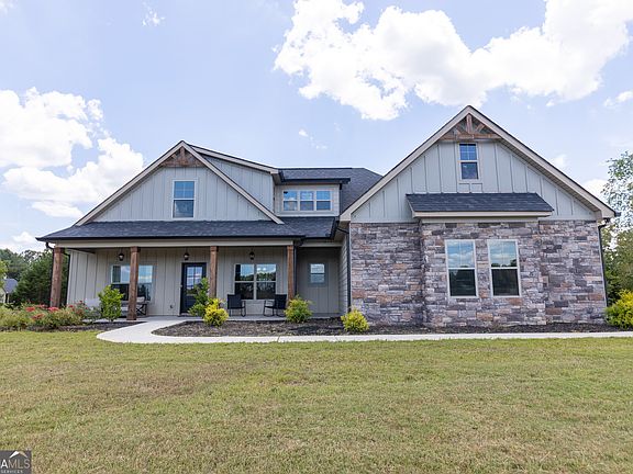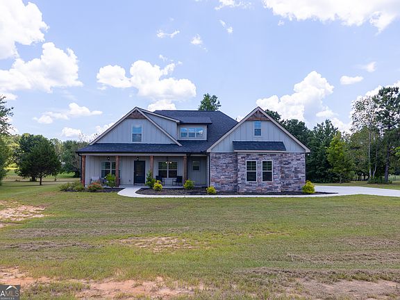 This stunning 4BR/3BA home on 2.22 acres in sought-after Pike County- Built in 2022, is a modern home featuring an open concept floorplan and the owner's suite plus 2 additional bedrooms on the main level. This home boasts a vaulted family room with stacked stone fireplace, a large island perfect for family meals or hosting and features LVP throughout the living area and in secondary bathrooms. Upstairs includes a private guest suite or bonus room with full bath and loft space. Enjoy peaceful views from the covered back porch with cozy outdoor fireplace. Ideal for those seeking a slower pace of life, yet conveniently located near Senoia, Griffin, Williamson, and Newnan. A perfect blend of comfort, space, and convenience!
