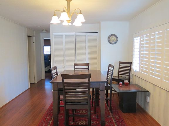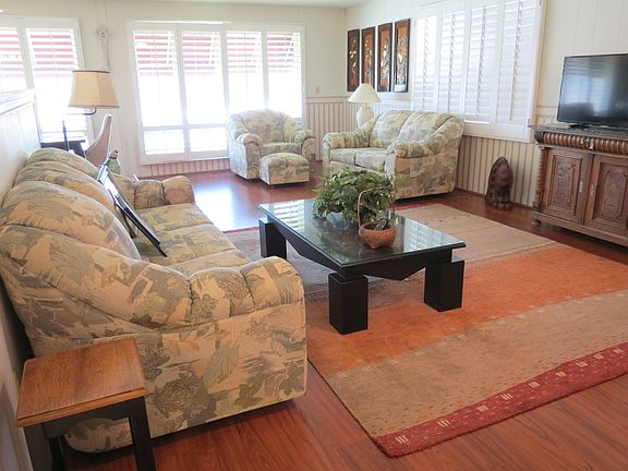 Charming remodeled home in Tri Palm Estates & Country Club just waiting for you! This roomy 2-bedroom 2-bath home blends classic features like built-ins with modern ones, like a remodeled open floorplan and beautiful laminate and tile flooring. The spacious living room feels light and bright, with large windows and white plantation shutters. The main bedroom includes an ensuite bathroom with large walk-in closet, and also adjoins a sunny ''California room'' with a daybed. There's a newer A/C unit for cool comfort, and newer ceiling fans as well. The home is fully-furnished (it even includes a Sleep Number bed!) and includes all appliances--clean and move-in ready! And it's located in an area of the community which enjoys reduced monthly HOA fees. Tri Palm Estates is an active 55+ community where ownership includes free unlimited golf on the 18-hole and 9-hole par-3 courses, as well as putting green, tennis, swimming in the Olympic-sized pool, spa, pickle ball, shuffleboard, and use of the clubhouse with its banquet room, restaurant, bar, billiard room, and clubs & organized activities. With easy access to I-10, you're only minutes away from the shopping, dining and services of Rancho Mirage, Palm Desert, and downtown Palm Springs. Come see this updated classic home, and make it your new desert getaway!