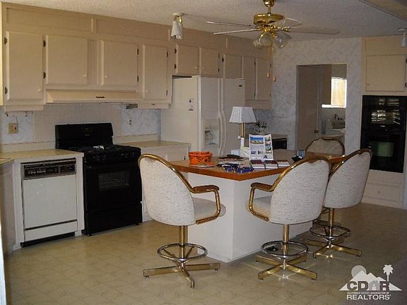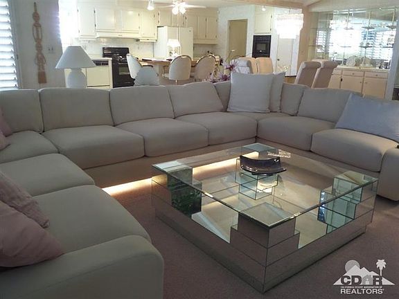 NOW $259,900! A DESERT JEWEL. New pricing makes this home even more attractive. It boasts over 1800 sq.ft. So beautifully appointed it is a must to see. Truly move-in ready. Decorated in soft neutral colors complementing any decorator theme. The garage has an interior door that opens directly into the laundry room and kitchen. Cabinets and counters galore. The master suite has a huge walk-in closet and a lovely master bath. The second bedroom and bath are located off a central hallway away from the great room activities. The great room has high ceilings, and a bank of shuttered windows along the back and side walls. Add in the cozy patio, all offering fabulous views of the greenbelt and majestic mountains. Don't let this one get away. FURNITURE IS INCLUDED!
