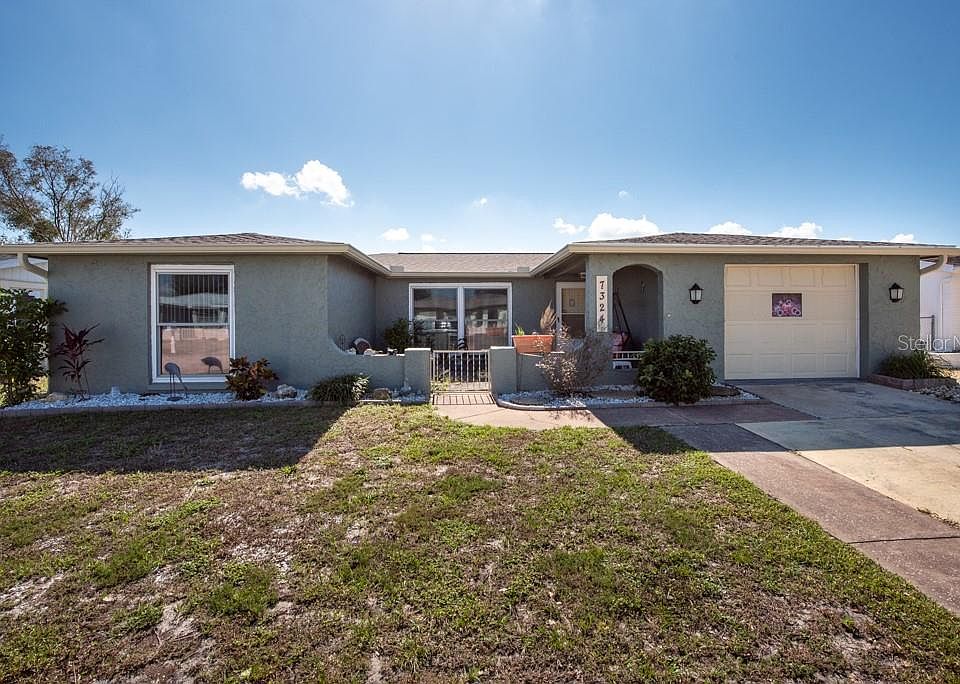 CHARMING & BEAUTIFULLY MAINTAINED 2 bedroom, 2 bathroom, 1-car garage home located in delightful community in the heart of Port Richey. Spacious lot with LOVELY curb appeal, and a delightful "rocking chair" FRONT PORCH! The interior spaces are warm & inviting & hugely FUNCTIONAL. Formal & informal areas are equally wonderful. The welcoming living room offers GLEAMING flooring, and it is the perfect space to ENTERTAIN friends and family! Master bedroom is LARGE & boasts an EN SUITE bathroom with DUAL VANITIES, as well as a makeup area!! The additional bedroom is very multi-functional, and is easily convertible!! The fabulous kitchen eagerly awaits its next top chef! Cooking is a delight in OPEN KITCHEN showcasing cheerful white appliances, plenty of cabinet space, a STAINLESS STEEL microwave, a breakfast bar, and a sunny WINDOW overlooking the big back yard to enjoy the activity. Off of the kitchen, you will come upon a beautiful FIREPLACE, as well as SLIDING GLASS DOORS that lead out to a covered lanai to serve up iced tea for those lazy afternoons, and overlooks the FULLY-FENCED backyard. You will find a spacious COVERED deck out back ideal for entertaining, or relaxing after a long day! BIG FENCED backyard offers endless opportunities, and has a SPARKLING POOL! Additional bonuses include: FRESH INTERIOR PAINT (2019), a NEWER roof (2yrs), NEWER A/C (2yrs), NEWER water heater (2yrs), and a NEW dishwasher!! Come enjoy the peaceful yet convenient location close to US-19 for easy commutes anywhere Port Richey has to offer, as well as many other locations!! Don't miss this FANTASTIC opportunity, and buy this home NOW!