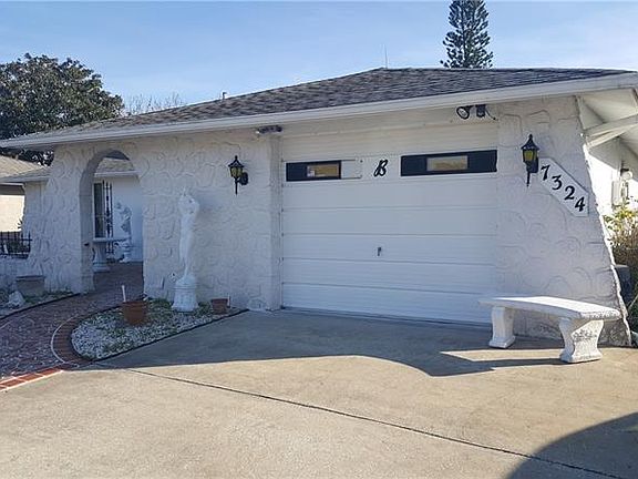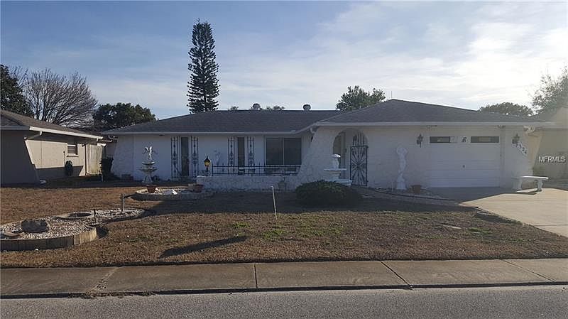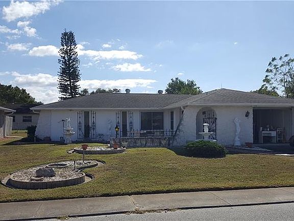 BACK ON THE MARKET. Buyer's loss is your gain. Come view this beautiful home in the popular Embassy Hills, Port Richey neighborhood. This home has an open layout and includes a large Florida room. Appliances are included! Furnished! Storm shutters! Oversized 1 car garage. Shed for extra storage. Tiled and carpeted. Large front porch/patio where you can sit in the beautiful Florida weather and say hello to your neighbors. Come see this lovely home today!