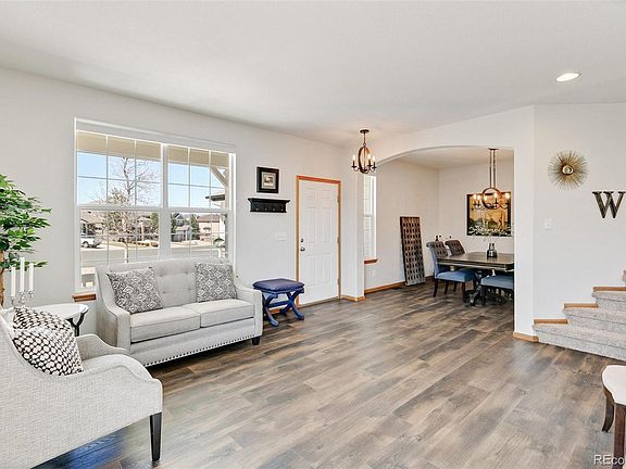 Close to Open Space, Greenbelt and Outlets at Castle Rock, the community pool and rich with features for outdoor enjoyment! Offering the elegant simplicity of contemporary architecture, this 6-bedroom, 4-bathroom charmer is found in the Sapphire Point development, known to be a great location. Enjoy pleasant greenbelt views. Exterior includes large composite deck, inviting patio, pagoda-style gazebo, and a breezy front porch. Also: AMAZING views. Once you enter this home, nice touches embrace you with hardwoods in kitchen and living spaces, an open layout, stylish lighting, neutral decor, and a gas fireplace in the living room. With ample room for food prep, the kitchen brims with fresh updates and two ovens, as well as new porcelain countertops. Beyond simply calm oasis, the highly functional primary bedroom includes a walk-in closet, a linen closet, and a private bath with a shower and jetted tub. The other five bedrooms, distributed on multi-levels for privacy, are quiet and designed with plenty of wardrobe storage. Finished basement serves as guest quarters, in-law or rental. This home also has an attached three-car garage. Please take note at the upgrades: Walk-out basement recently finished and added a bathroom, bedroom and kitchenette, New countertops throughout the home, lots of new fixtures, flooring/carpet is only a few years old, new exterior paint and NEW SOD in front and back. This home is well cared for and ready for a loving new owner. This one checks your "must have" boxes.
