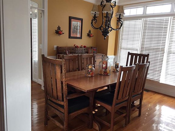 This Former Parade home on acre lot has something everyone will enjoy. Features hard to find down stairs master with large bathroom and walk in closet. Hardwood flooring throughout. Kitchen has tile, Center Island, solid surface and stove plumbed for gas. Oversized garage with built ins. Large bonus room and plenty of closet space. Outside features trek deck, screened in, koi pond, fire pit and treehouse. This is a must see. Ideal location with easy commute to Raleigh and Durham via bypass.