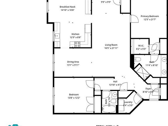 - Room types: Living Room, Dining Room, Primary Bedroom, Bedroom 2, Kitchen, Den, Foyer