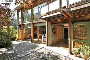 "Bring the outside in". Architect designed; unique secluded glass, wood and concrete contemporary in it's landscaped garden. Window walls rise up to the second story. A curved stairway echoes the curved concrete wall below. The coolest of Rockridge! Award wining design! Open House on 12/04/2011, 2:00-4:30 pm