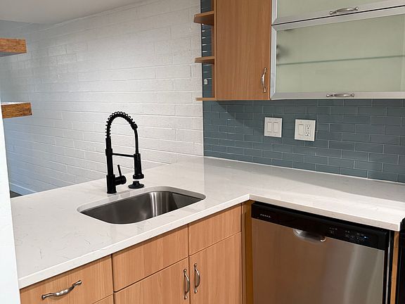 Modern fixturesUpdated kitchenPrivate layoutFresh paintPlenty of natural lightChic glass tile backsplashIn-unit laundry hookups