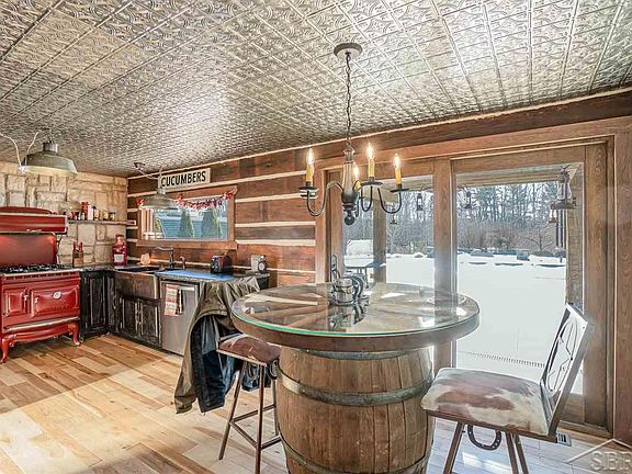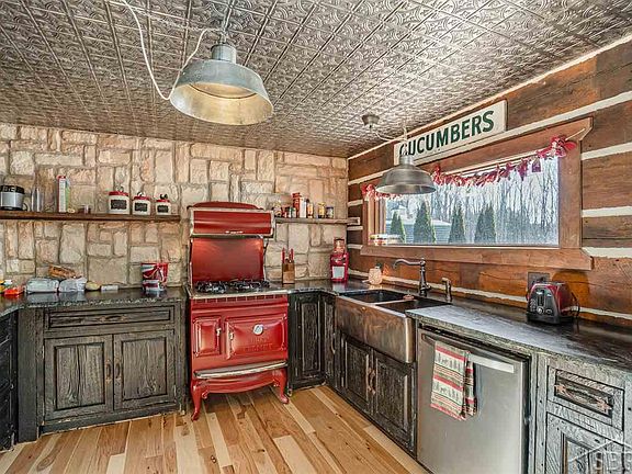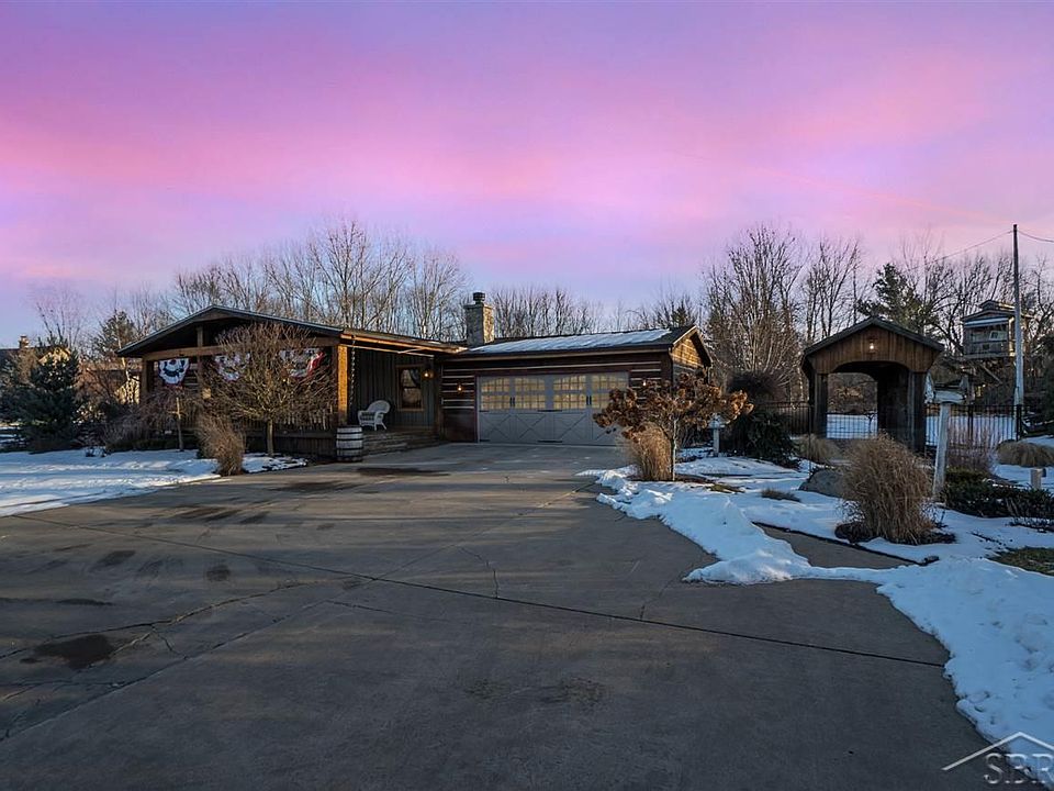 Wow. Where to start, Country Charmer, From the 16x24 Large Covered front Porch, Stone Fireplace in the living room, to the Open Kitchen / Dining area, Concrete Countertops, leading out to New Cement Patio, Gazebo, saltwater Pool, fire pit. 2 story Playhouses, Covered Bridge with water garden. Fenced in backyard. Full finished Garage. Newer Furnace, Central Air. 16x12 Shed.