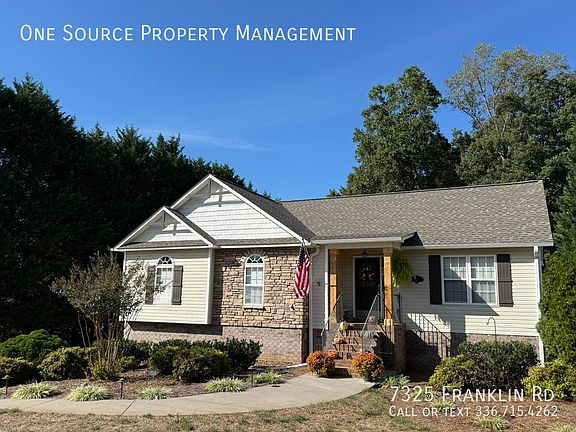 This property requires 24 hours notice to show. This single-family home is located at 7325 Franklin Rd, Lewisville, NC. This property has 3 bedrooms, 2.5 bathrooms, and approximately 2065 sq ft of floor space. This property has a lot size of 0.44 acres and was built in 2000. Central heating and air. This property is available to view now and move in mid October. Do not miss this opportunity to nestle in this lovely home in a great community!