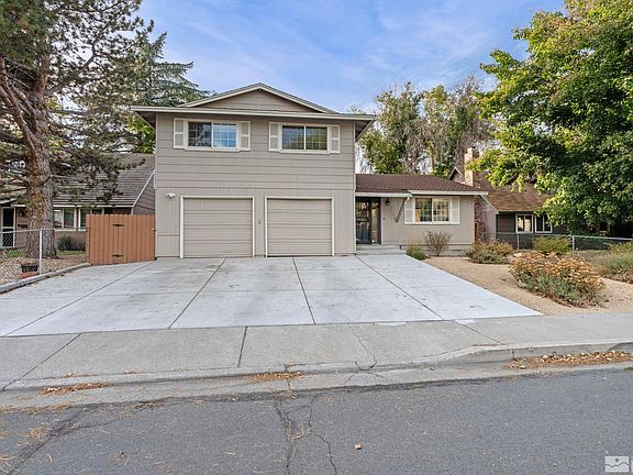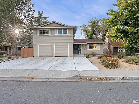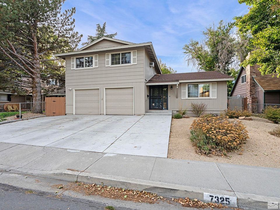 Welcome home to this gem in the heart of Reno that features mature landscaping and trees. The backyard is fully landscaped with a beautiful lawn, built in propane fireplace, new sprinkler system, double swinging chain link fence for easy access, and a peaceful covered patio perfect for summer nights and BBQs. The open concept kitchen offers plenty of counter space, upgraded Zline appliances, upgraded cabinetry, and tasteful granite countertops., The front features low maintenance Xeriscape on a drip system, and ample space for RV/boat parking. This inviting home features two separate living areas great for larger families, a large primary bedroom along with two well sized rooms upstairs. The home also features a newer water heater from April of 2024, new AC wall units installed in 2022, new exterior paint from 2023, and newer interior paint from 2021. The garage features plenty of storage space along with the storage shed in the backyard. A fully equipped Ring security system is installed and ready to use upon move in. Close to Huffaker Park trails and playground makes for a great family neighborhood.