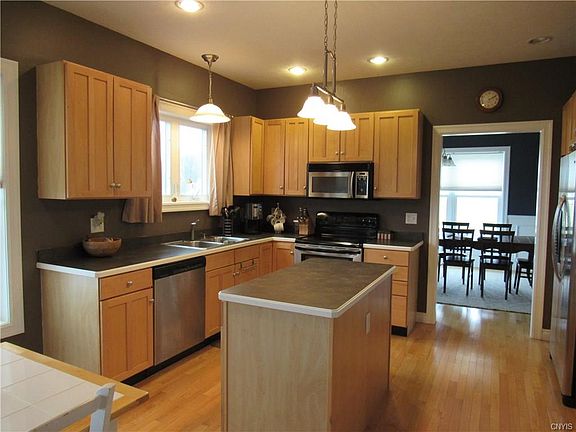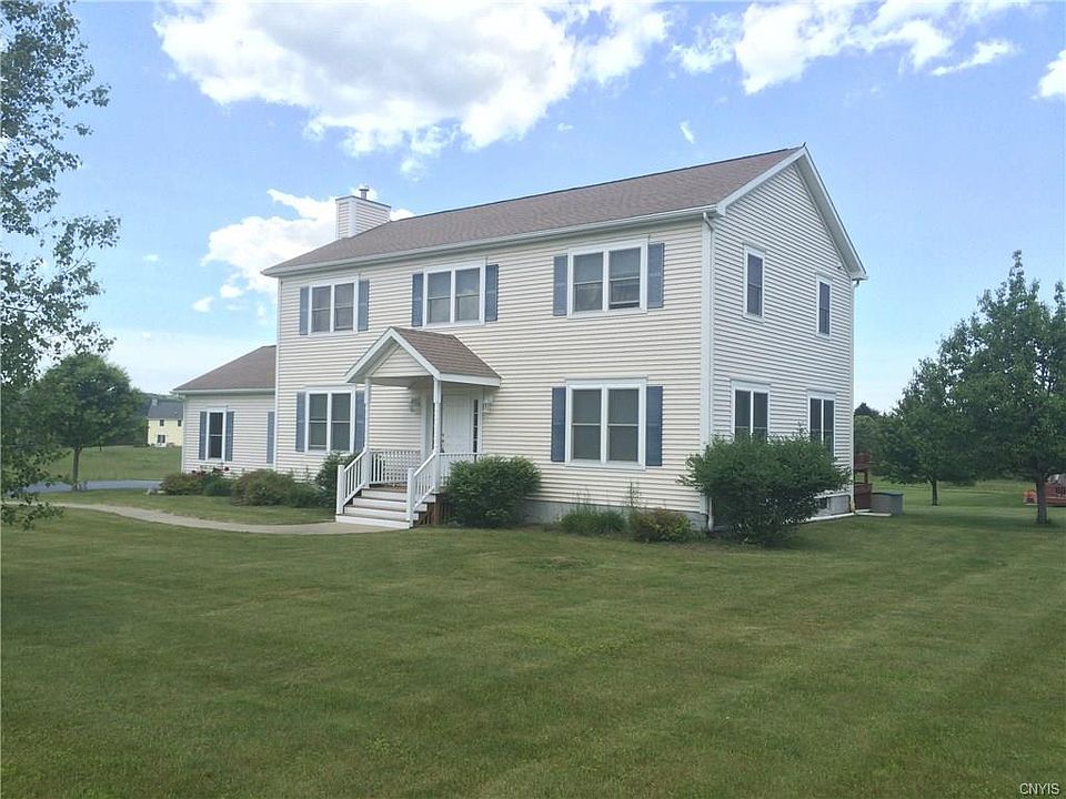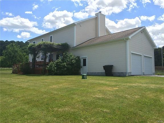 Well built home in nice residential neighborhood, about 3 miles from village of Hamilton & Colgate University. Traditional center-hall colonial with formal LR & DR, kitchen-family rm. open floor plan, gas fp in FR, high ceilings first floor; spacious deck with arbor spans the back of the house, level yard great for kids (and potential pool). Master suite 2nd flr., walk-in closet, jaccuzzi & shower, 3 generously sized guestrooms, full bath, 2nd flr. laundry. Full unfinished basement but great potential for additional living space and/or workshop. Attached 2 car garage offers good storage.