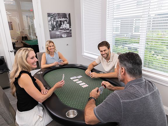 Heated resort-style poolFire pitGame roomMultiple loungesBusiness roomAttached garages