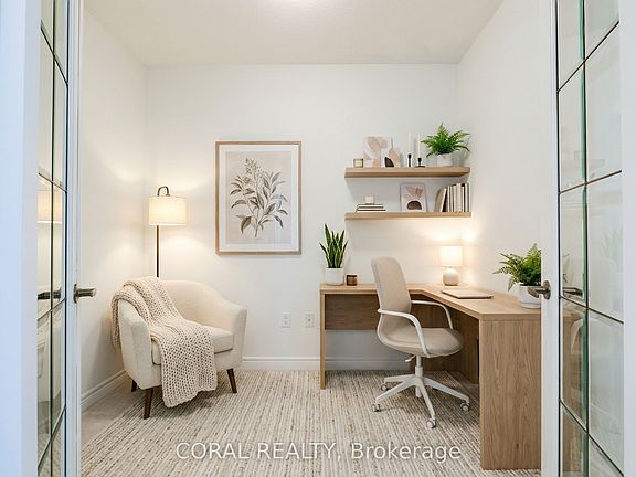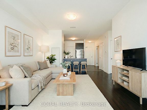 Welcome to your sunset sanctuary in the Ginger model at GreenLife Midtown Markham! This bright 1 Bedroom + Den condo (683 sq.ft. + 45 sq.ft. west-facing balcony) delivers effortless modern living with soaring 9 ft ceilings and an unbeatable open flow.Step in and feel the wow: a sleek U-shaped kitchen with extended breakfast bar overlooks the generous living/dining space-ideal for cozy nights in or hosting friends while golden-hour light pours through massive west-facing windows. Freshly painted throughout and professionally cleaned, it's truly move-in ready. Right off the entry, the spacious den is your flexible dream spot: a productive home office by day, nursery or creative retreat by night. The living area flows straight to your private balcony-prime for morning coffee or evening sunsets that paint the sky.Retreat to the roomy primary bedroom with a large closet and that same glorious western light to wake up refreshed. A clean 4-piece bath and oversized laundry/storage closet off the kitchen keep everything practical and tidy. Location? Pure gold-a true walker's paradise with Costco, groceries, restaurants, and vibes just steps away, plus peaceful trails around Celebration Park and Fairtree Pond for those refreshing escapes. Plus: parking and locker included.