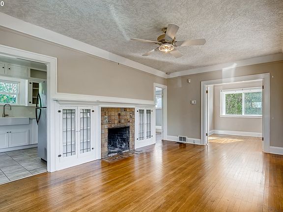 Charming Cully bungalow with spacious backyard. Updated kitchen with farm sink, gas stove and stainless appliances. Living room features wood floors, wood-burning fireplace, leaded-glass built-ins. 2 bedrooms on main floor. New windows throughout in 2018 with transferrable warranty. Bath has period tile, clawfoot tub. Finished basement with media room, gas-fireplace, half-bath and 3rd bedroom/office. Private backyard with shed has loads of potential for gardening and entertaining.