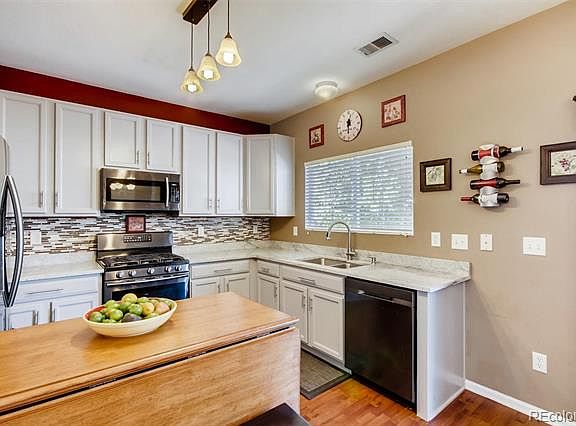 Pride of ownership is evident in this beautifully maintained two-story in the highly desirable Creekview at River Run community. With an abundance of natural light, 3 bedrooms, 2.5 bathrooms, an upstairs flex area, and a two-car garage, this home lives large! You will fall in love with the freshly refinished kitchen with contemporary gray cabinetry, new granite, and stunning black stainless appliances. The spacious stamped concrete back patio is the perfect spot to enjoy your morning coffee or a bbq with your favorite people. The recently painted exterior and long lasting concrete tile roof will give you peace of mind for years to come. This home is conveniently situated in the Southeast corridor just minutes to the Denver Tech Center, Inverness, and the Broncos training facility, with easy access to lightrail, downtown and the airport. Just a short stroll will get you to Red Hawk Hills Elementary, the Cherry Creek trail system, and the beautiful Cherry Creek Valley Ecological Park.