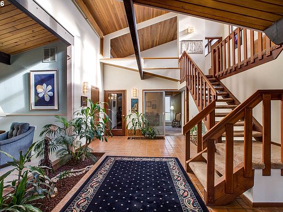 NW contemporary modern,originally a Rummer built home with a unique passive solar designed addition that includes a master suite and large loft living space.Wood vaulted ceilings throughout , a wall of windows along the back and across the loft brings the outdoors and natural light in. Large open kitchen with 2 pantries, a second master suite on the main level, 2 bedrooms + office and laundry room.New roof, gutters, exterior paint.