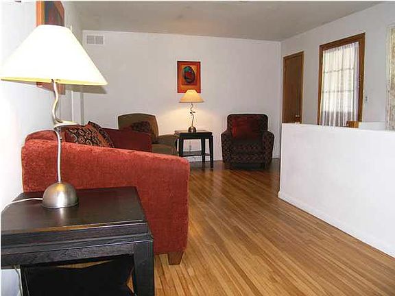 ASSUMABLE FHA $105500 loan saves loan costs. AND a Great place to live! Terrific Full Brick, newer 2007 Heritage roof, beautiful hardwood floors, great decor, fully applianced including washer and dryer, family room in basement has neutral carpet, additional finished room in basement has large window & finished through sheet-rock with lots of can lighting but needs carpet and closet doors and baseboard, majestic trees in fenced backyard, large patio for outdoor living, 2005 HVAC both furnace and AC. Within short walking distance to desirable Kensler Elementary. The wall privatized and securing the stairway into the basement does form a separation between the stairway area and the balance of the living room. If that is an issue, there is a possibility that it could be removed and a railing installed to create a more open living room.