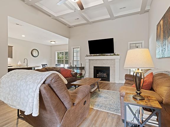 All brick home in beautiful Pleasant View with all bedrooms downstairs! Minutes to shopping and the interstate. Living room has a high, coffered ceiling and fireplace! Bonus room upstairs has a half bath and walk-in attic storage. Oversized primary suite downstairs with sitting area - can be used for an office, etc. Large covered deck, level back yard, and additional patio/pavers for grilling!