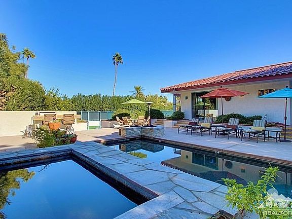 Short-term Vacation Rental Please email or call for availabilities. Monthly rates start at $7500 to $13500- Weekly from $2500-7500 (Coachella). This private estate was once owned as a vacation house by the Driscoll family. The property was completely remodeled in 2005. The interior and exterior were both upgraded with the finest materials and the home is beautifully detailed and decorated with upscale art, custom furniture with a Southwestern flair. Located in Prime location of South Palm Desert, 4 blocks to famous El Paseo, world-class shopping and dining, golf courses, hiking and biking trails. Over 1/2 acre lot sports a saltwater pool, spa, fire pit, outdoor grill, a full-size private sunken tennis court with computerized tennis ball machine (our court was resurfaced and maintained by the same company who is responsible for all the courts at the Indian Wells Tennis Garden, home of the BNP Paribas Open).