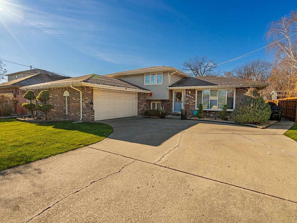 Welcome to your dream home in Bridgeview! This stunning 3 bedroom, 2 bath remodeled split level is a masterpiece of modern design and comfort. Nestled near Geeks Stadium on a beautiful block, this home offers the perfect blend of convenience and tranquility. As you step inside, you'll be greeted by an open and airy floor plan that seamlessly connects the living room, dining area, and updated cherry kitchen with elegant countertops, stainless steel appliances, ample cabinet space and a spacious island and stainless steel appliances that is sure to inspire your inner chef. The seamless flow from the kitchen to the backyard and deck creates an idyllic setting for entertaining, while also providing a seamless connection between the dining area and living room. This stunning property boasts the epitome of luxury and elegance, with hardwood floors gracing every bedroom and the main level, exuding warmth and timeless charm. The upper level features three spacious bedrooms with plenty of natural light and serene views of the surrounding well kept neighborhood. Step outside onto the deck to enjoy your morning coffee or host gatherings in the fenced yard complete with a charming shed for additional storage. With all the remodeling done in the past few years (HVAC, windows, fence, appliances, both bathrooms) this home is move-in ready for you to start creating unforgettable memories.Just remodeled upstairs bathroom will take your breath away with designer tiles , leading to a dual sink vanity with dark brass hardware that exudes elegance and a whirlpool tub, perfect for unwinding after a long day. The second bathroom offers a different yet equally captivating experience, with a fancy shower, mocha spice vanity , granite counter, and a striking stone sink. As you step onto the lower level, you'll be greeted by sleek laminate flooring that adds a modern touch to the space. You will love the spacious family room, cozy office nook, conveniently located laundry room/mechanical room & a gorgeous bath. Family room connects to a large garage through the mudroom area that provides extra storage and another access point to the backyard. Please note the workshop area in the garage that can offer additional storage or is perfect for a variety of hobbies. Plenty of closets and additional storage in a concrete crawlspace with a backup sump pump system. Extremely well maintained home with quality improvements made to last.