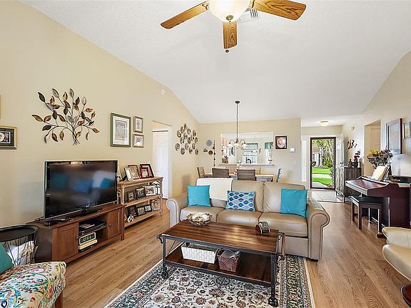NO BOND and MOVE-IN-READY!! This custom-built 3 Bed, 2 Bath Willow (Wisteria/Sedona III) Designer Model Home is nestled in the Village of Chatham. With plenty of curb appeal and charm, this home offers a split/open floor plan with over 1,490 sq ft of climate-controlled living space and a beautiful welcoming paver driveway/walkway. Updates include a 2024 ROOF, 2024 WATER HEATER and 2016/2017 HVAC, 2025 NEW IRRIGATION VALVES and 2025 NEW QUANTUM FIBER OPTIC NETWORK installed.The kitchen boasts ample room for storage, solid oak cabinetry (all with pull-out sliders), 2022 appliances, an open pass-thru into the dining room, subway tile backsplash and a cozy eat-in nook with a front half-bay window. There is NO CARPET in this home as all FLOORING REPLACED in 2019 to LUXURY VINYL / TILE. The spacious Master bedroom includes a ceiling fan, a generous CUSTOM U-SHAPED WALK-IN CLOSET, and an ensuite bathroom with integrated sink countertops, a double vanity, a step-in shower with glass doors, and a linen closet. The Laundry room is located right off the Master Bath and includes its own laundry tub, a 2021 WASHER and DRYER and is also accessible from the garage. On the guest side, two spacious bedrooms embrace the ample natural lighting, closets and ceiling fans, complemented by a hall linen closet and a guest bath with toilet, vanity, and a tub/shower. From the open living area, you can step outside into the private, EAST-facing screened-enclosed lanai with a beautiful park-like view of the neighboring landscaping. The 2-car garage includes custom storage cabinets, a separate door to access the Laundry room and additional storage above in the attic. This home is perfectly positioned south of the new First Responder’s Recreation Center (with its large resort pool, pickleball, huge game room, basketball, soccer, lawn bowling, sand volleyball, and the challenging eighteen hole putting course) and just west of the Nancy Lopez Legacy Country Club (with fine dining, a pro-shop, driving range, training facility and the 27- hole golf course and the Legacy Pool Bar and Grill). This ideal location is less than a minute golf cart ride to Chatham Recreation Center, and a short distance from Publix, many restaurants in the Mulberry Plaza, several Recreation Centers/pools, many executive golf courses, the Savannah Center, Spanish Springs Town Square and several healthcare facilities including The Villages/UF Health and the VA Clinic. The Big Box Stores like Walmart, Lowes, and BJ’s are also located just a few miles away. Notes: Some of the Furniture is Negotiable and the A/C unit is large enough to accommodate heating/cooling the lanai (should the new owner wish to fully enclose it) adding to the overall square footage/living space of the home.