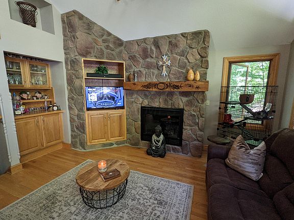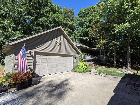 Well maintained & updated raised ranch home, situated on 2 lots with mature trees, plus lots of deer & turkey. 4 bedrooms, 2 baths, and fabulous great room with gleaming hardwood floors and 16' floor to ceiling fireplace. Actual square footage is 2172, per owner. Great room opens to spacious deck and 12x12 enclosed screened porch. Open kitchen with granite counter tops and 1st floor laundry. Spacious 1st floor master with large walk in closet and private 8x10 deck overlooking mature trees. 30x8 covered front porch as well. Views from every angle! 24x24 detached garage with concrete floors.