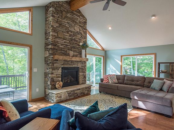 Great value just one hour from Powell & Dublin! Wonderful lakehouse in the private, gated community of Candlewood Lake. Just built in 2013, only one owner. Great room w/ gorgeous floor to ceiling stone fireplace & huge windows providing views of trees & lake. Eat-in kitchen w/ stainless appliances & granite counters opens to the great room for a spacious, open feel. Listen to the birds & watch for deer from the large deck, accessible via sliding doors from the great room. 3 bedrooms & 2 full baths on the main level. Basement is plumbed & ready for finishing if desired. 2 1/2 car detached garage. Nearby you'll find shops for boat/car service & food/home supplies.