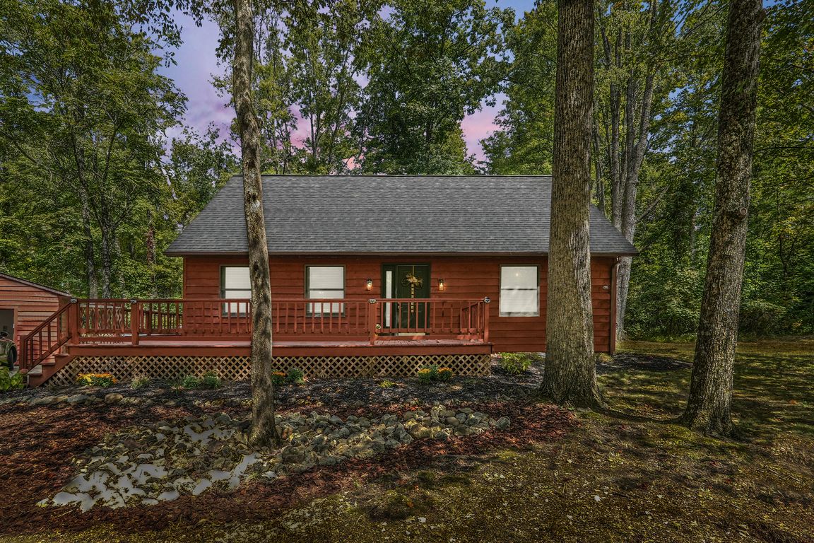Wooded viewsWraparound deckStunning sunsetsDouble lotNew mini-split hvac unitsNew lvp flooringGas hot water unit