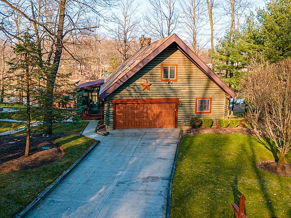 SPECTACULAR, ONE-OF-A-KIND, AUTHENTIC LOG CABIN LAKEFRONT HOME! Panoramic lake views from the soaring, exposed beam & vaulted great room, open concept kitchen & dining area with high-end appliances, & large outdoor deck! Upscale finishes, 3 bedrooms, 2 full baths & heated four-seasons room. Upstairs is a large loft with the main master suite, full bath & walk-in closet. The lower walkout level features a rec room, additional bedroom, & storage area. The dock features a covered boatlift, boathouse storage, & large ''party deck''. An attached two-car garage, as well as an additional, two car detached garage, with a full loft storage space above. Too many details to list, this home is detailed & cared for. Turnkey & move-in ready furnished with powerboat & golf cart-Full details in reports.
