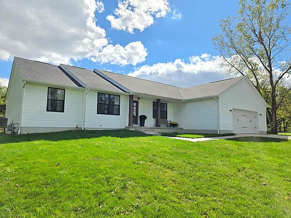 Gorgeous custom home built in 2021 in Candlewood Lake. Located in rural Morrow County 1 hour North of Columbus, Candlewood is a private, serene 1,500 acre vacation style community. Welcoming foyer leading into great room with gas fireplace, open kitchen with pantry & large island, formal dining room, private office, idyllic primary suite with walk-in closet, whirlpool tub and oversized shower, 2 additional bedrooms and spacious 2nd bath. Thoughtfully designed with a timeless yet modern feel; quartz counter tops, luxury vinyl floors, brick fireplace, cathedral ceilings and custom concrete patio complete the look. Laundry Room off of garage entrance, Full basement, 2.5 car garage. High-end kitchen appliances, including gas stove w/ double oven and washer/dryer stay with property - all there is left to do is move in!